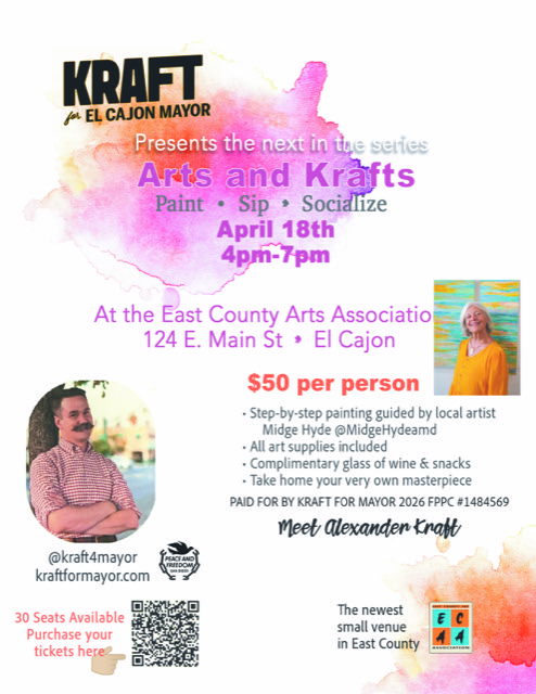 The East County Art Association focuses on supporting artists, building community, and creating opportunities for exhibitions, workshops, and creative collaboration. As a member-driven organization, we are committed to strengthening the arts in East County and providing a welcoming space for artists and art supporters alike.