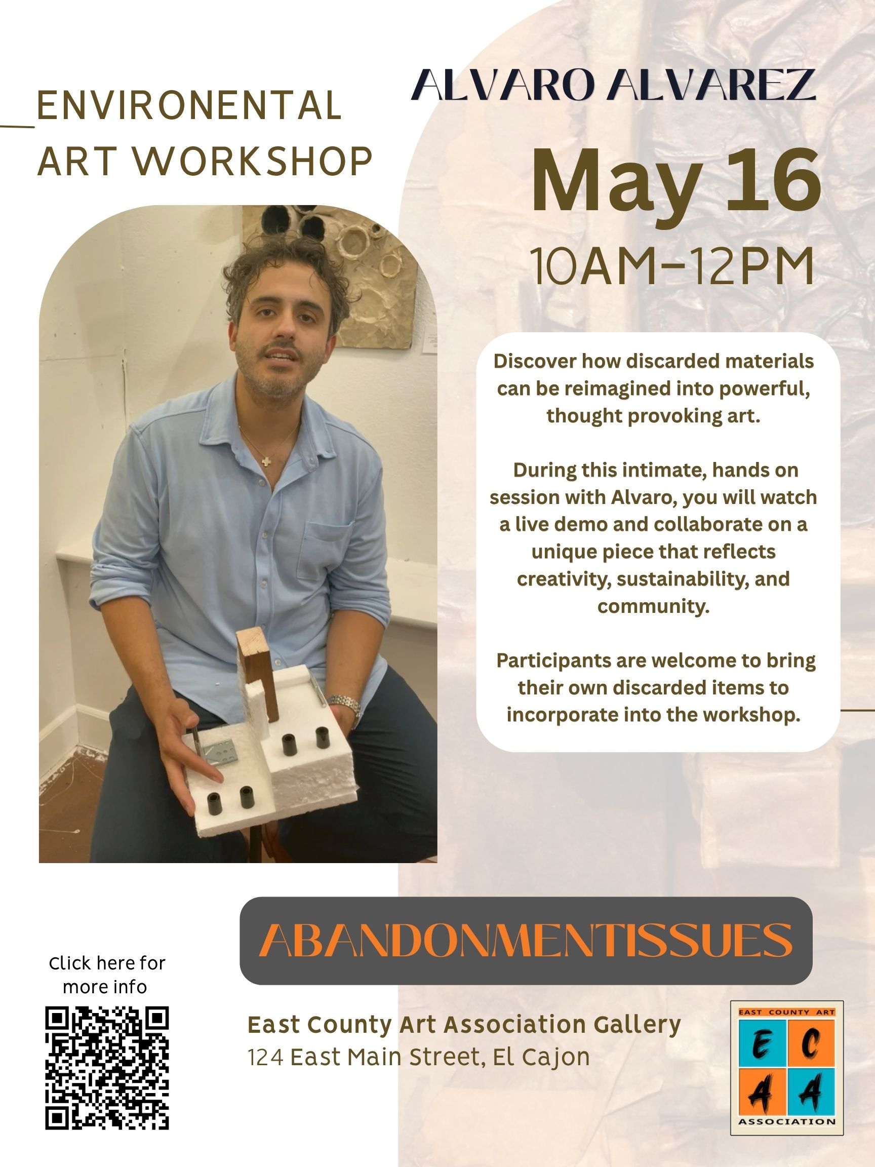 Discover how discarded materials can be reimagined into powerful, thought-provoking art. During this intimate, hands on session with Alvaro, you will watch a live demo and collaborate on a unique...