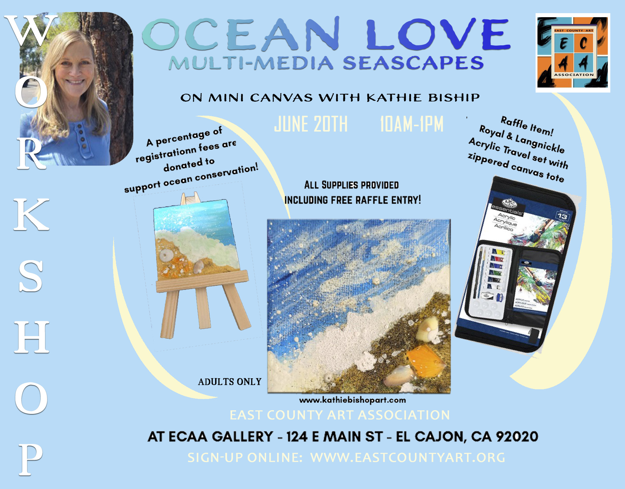 Join Kathie Bishop's watercolor greeting cards workshop this March 14th, 10am-1pm at the East County Art Association Gallery where students will create personalized greeting cards using simple to follow methods....